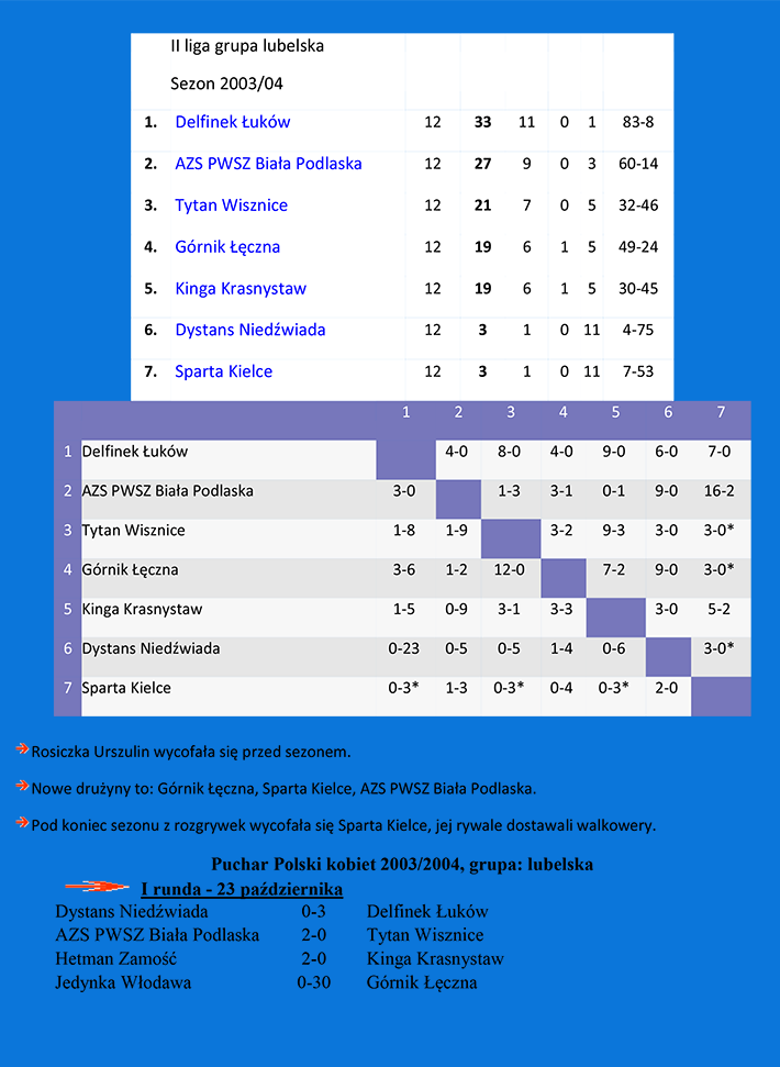 ZAWODNICZKI UPRAWNIONE DO GRY W SEZONIE 2003/04